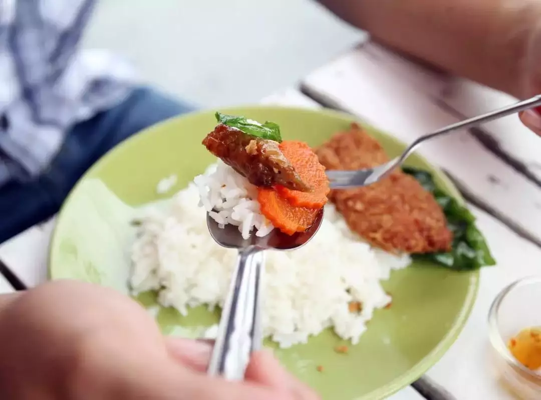 有些人一不注意就吃得太多,晚饭时吃到七分饱左右就合适啦,不然可能会带来消化不良等麻烦。特别是边吃饭边看电视,更容易不知不觉吃很多哟。