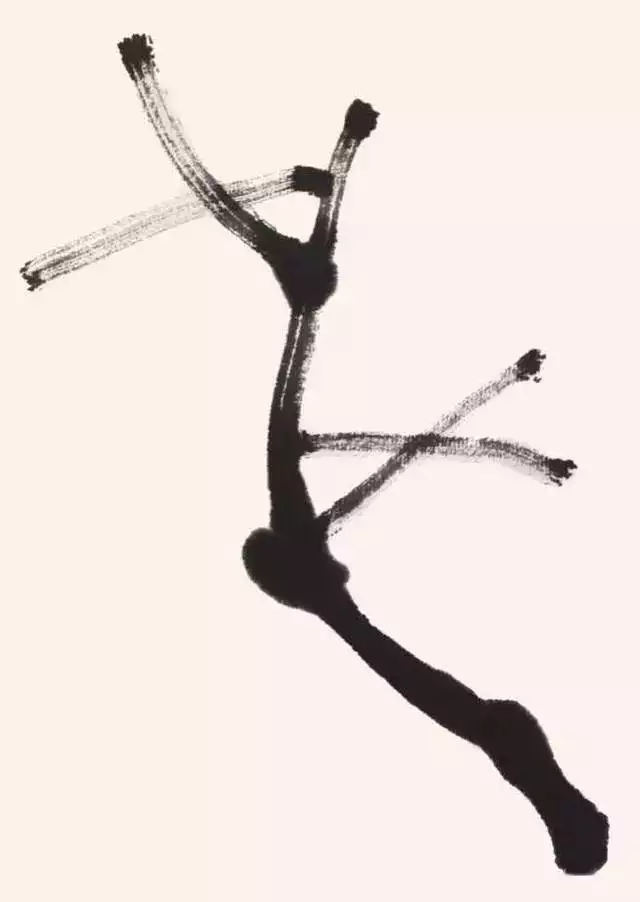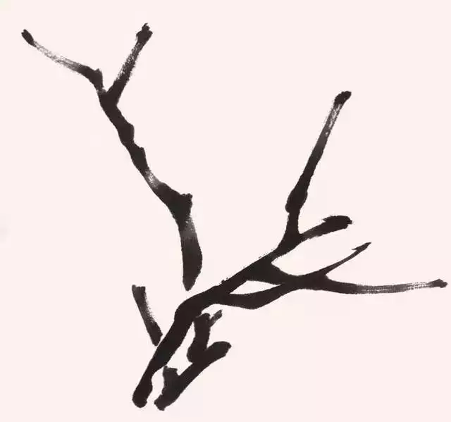 古人有“无女不成梅”之说,用书写的“女”字较为形象地说明了枝干的交叉、组合。第一笔出枝可称为主枝,第二笔称为辅枝,第三笔则要破主、辅枝的相交,使其更加丰富。