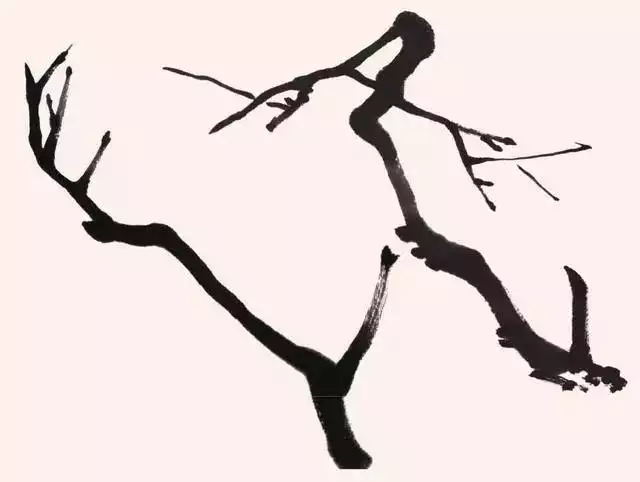 开始画梅枝要笔笔都有交代,如同写楷书一样。熟练后要画得松一些,像写行书或草书那样,用笔要灵活,中锋、侧锋都用。其枝条的姿态,要根据弯曲程度,采用快慢、顿挫、转折等不同的手法。