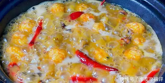 第六步:45分钟后,把所有香料挑出去扔掉,然后将锅中的汁水收干,接着放入一勺香油和少许葱花,继续将它们煸炒四五下即可起锅食用。