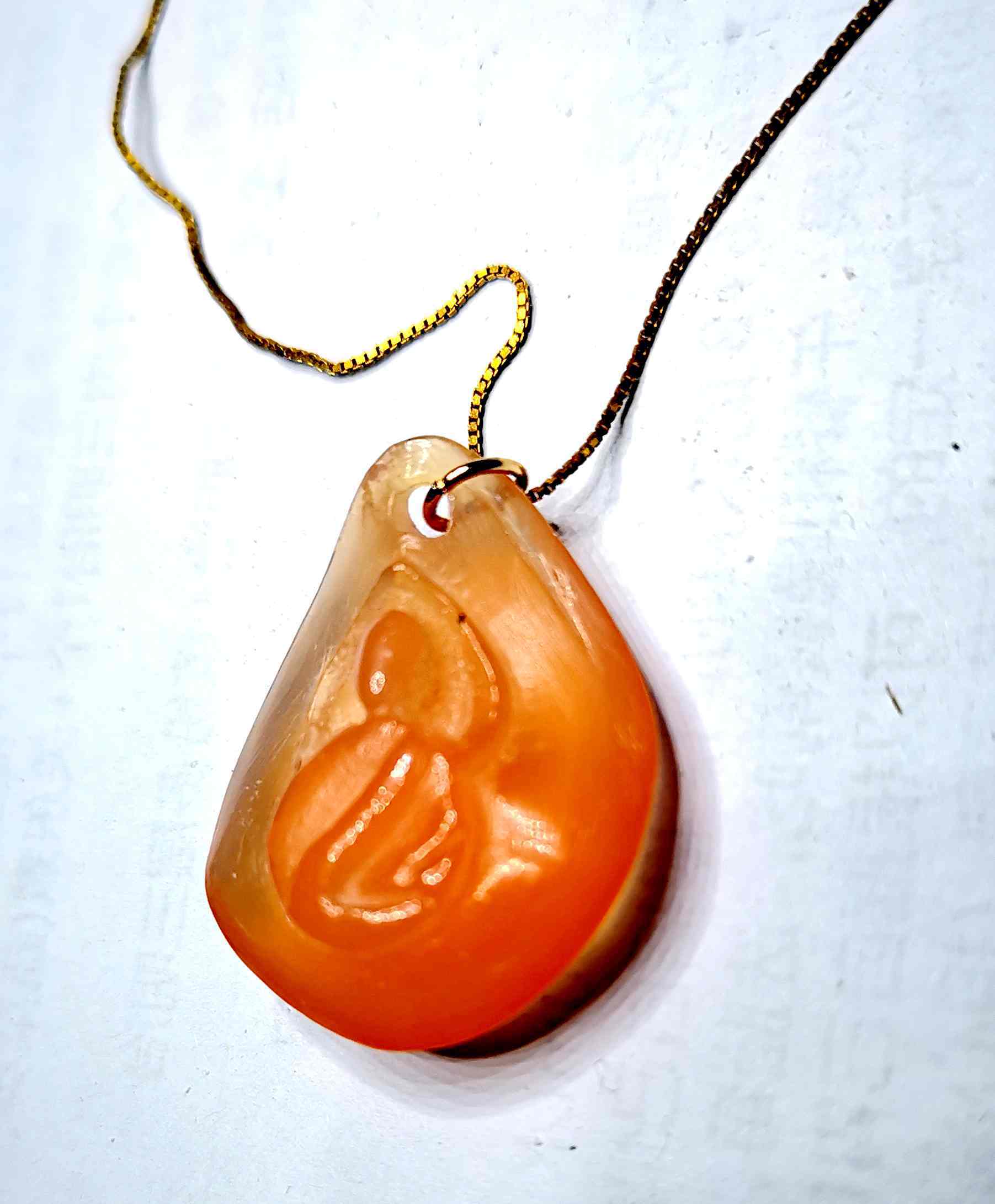开始在网络上寻找有关青鱼石的相关信息,看了不少,觉得最好不要破坏它的基本形状,做个心形颈链吊坠吧。但是看着正面那鼓出来的形状,又觉得应该雕刻个什么,不然觉得有些浪费材料了。