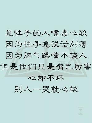 这类性格急躁的人,表面上看起来难相处,但其实最容易被感动,也最容易站出来替人打抱不平。