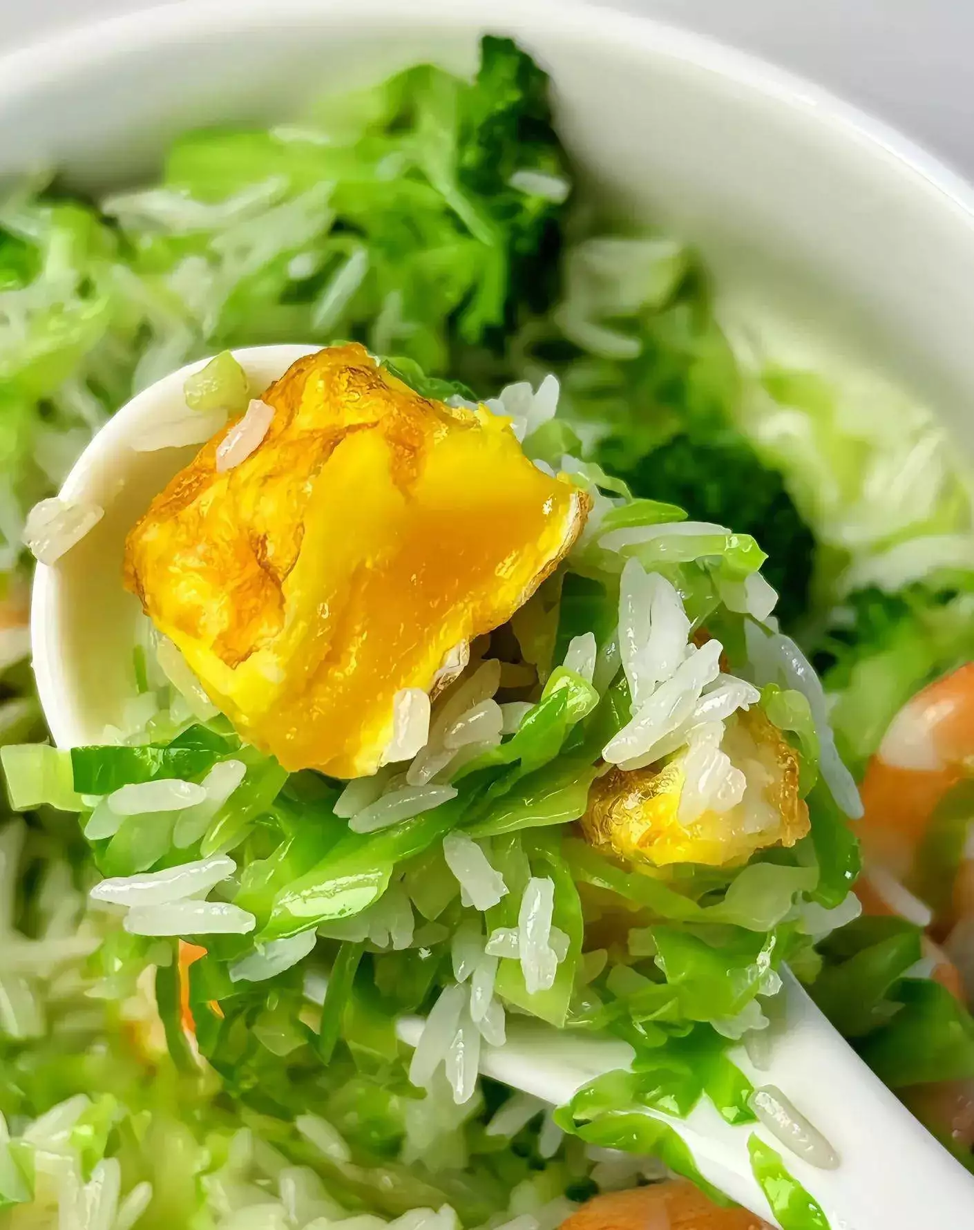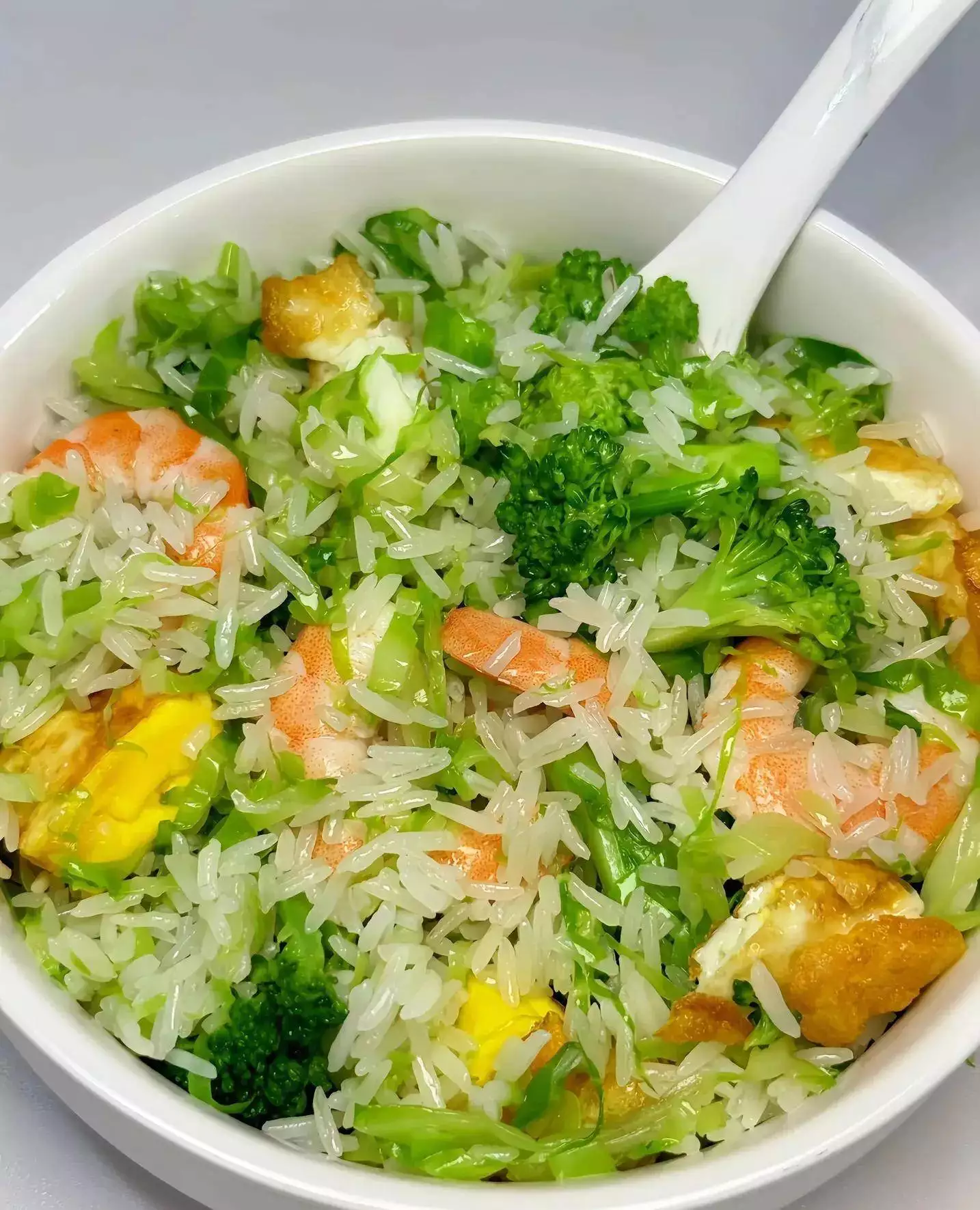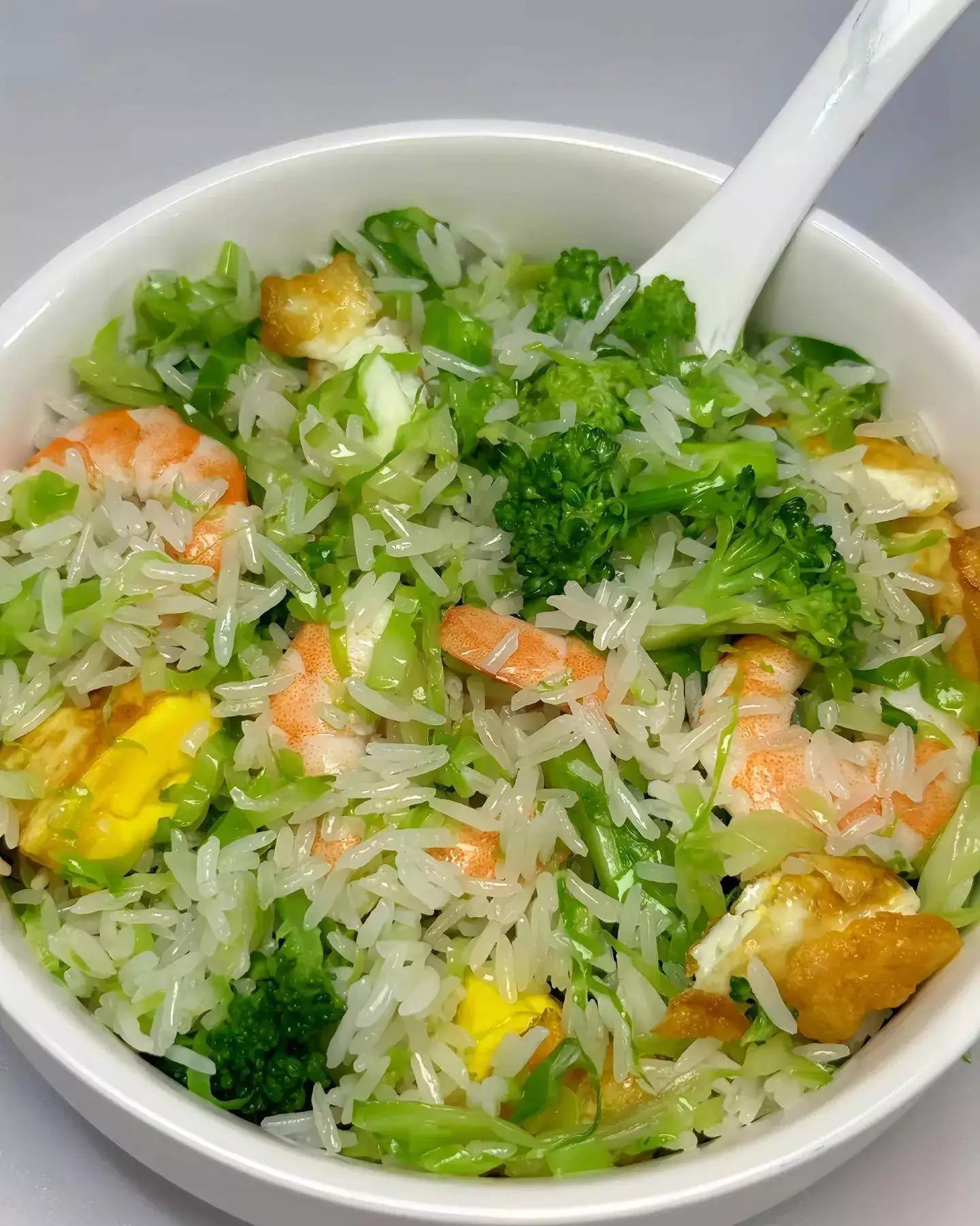 压力山大时,来碗西兰花包菜虾仁饭,瞬间治愈!绿油油的西兰花脆生生,包菜丝甜丝丝,虾仁Q弹鲜嫩,米饭吸饱汤汁,一口下去清爽不腻,肠胃零负担。
