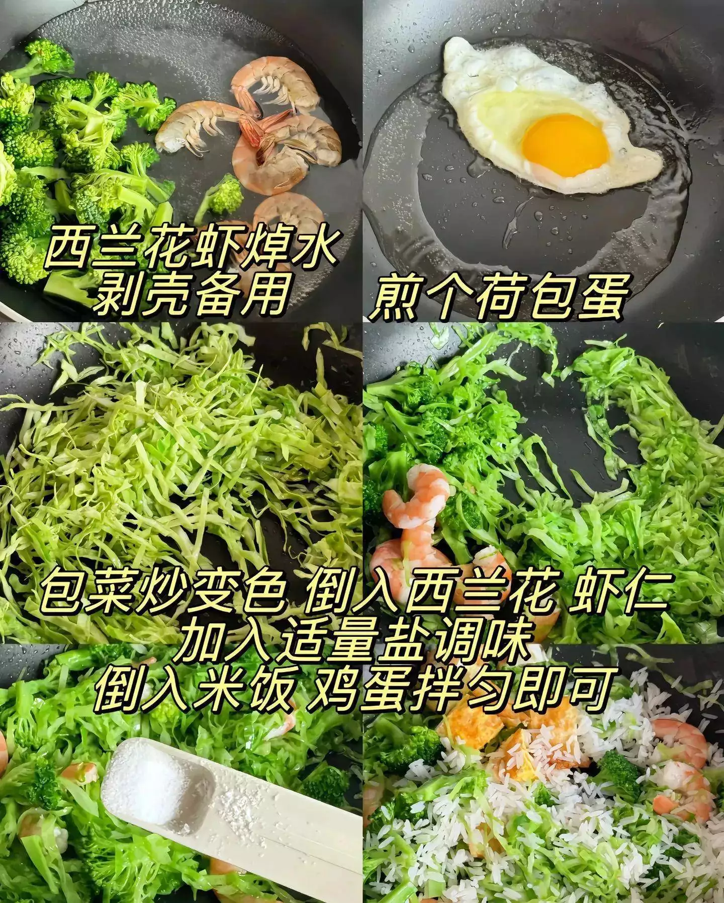 二、西兰花包菜虾仁饭:清爽低卡,降火安神就靠它