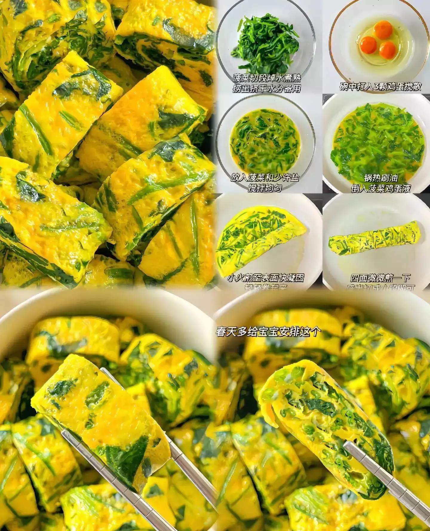 一、菠菜鸡蛋卷:外酥里嫩的神仙搭配,清肝又补铁