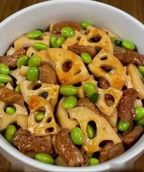 五、莲藕毛豆炒牛肉