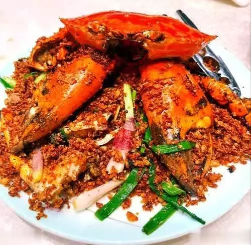 4. 锅中倒入适量食用油,油温烧至六成热,放入裹好淀粉的螃蟹块,小火炸至表面金黄,捞出沥油。