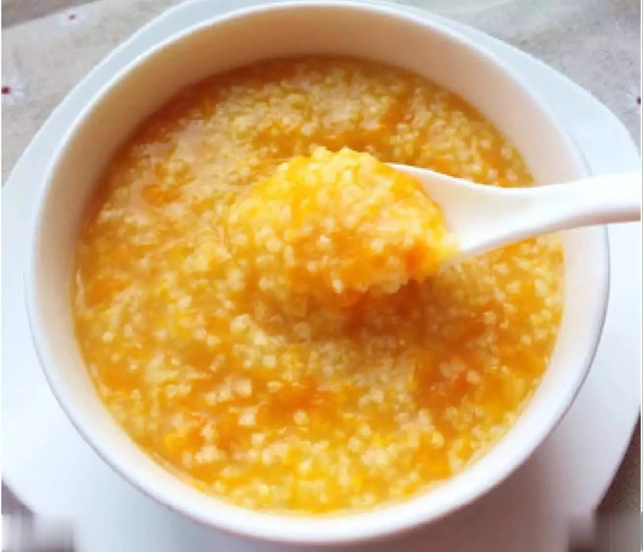 南瓜含有丰富的果胶和维生素,小米能健脾和胃,这道粥能让我们的肠胃更加舒适,有助于睡眠。