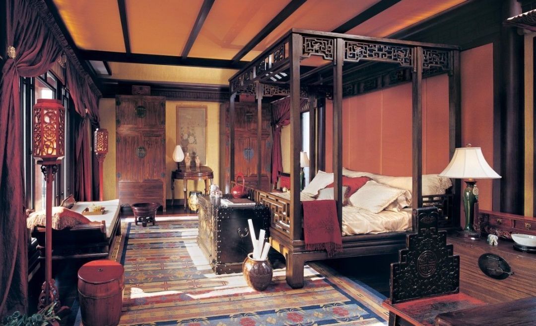 首先,架子床有顶有柱,外形就像一间小屋子,睡在架子床上,就像藏匿于自己的小世界,让人放松,并且把空间缩小,还可以藏风聚气。