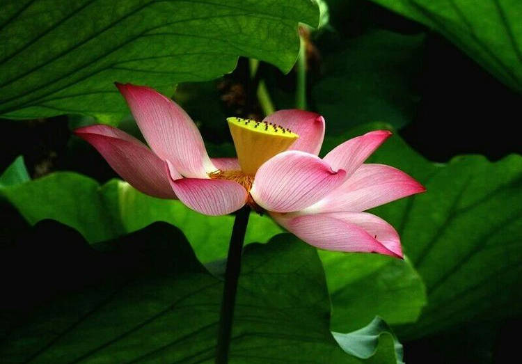 莲是平凡而朴素的,她不媚、不娇、不艳丽,总是着着白色或者粉色的衣装,素雅的开在绿色的荷叶和青色的水面间。