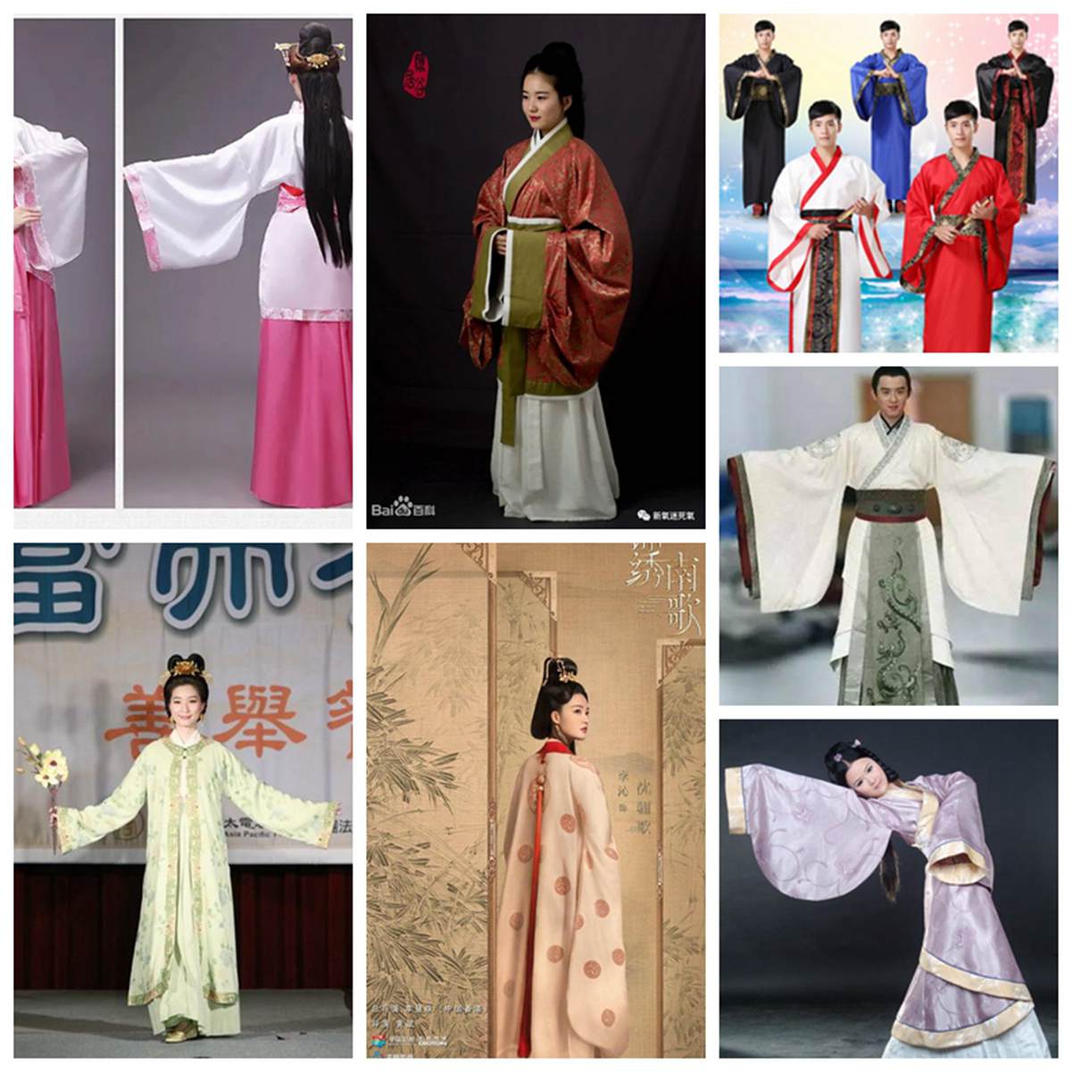 汉朝的冠服制度,大都承袭秦制。汉朝服饰直至东汉明帝永平二年,才算有正式完备的规定。汉朝的衣服,主要的有袍、襜褕﹝直身的单衣﹞、襦﹝短衣﹞、裙。汉代因为织绣工业很发达,所以有钱人家就可以穿绫罗绸缎漂亮的衣服。一般人家穿的是短衣长裤,贫穷人家穿的是短褐﹝粗布做的短衣﹞。汉朝的妇女穿着有衣裙两件式 ,裙子的样式也多了,最有名的是"留仙裙"。